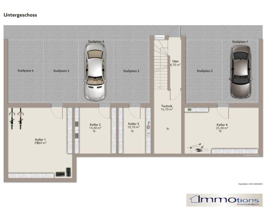 Die massive Holzbauweise kombiniert Ziegel, Holz und Stahlbeton und wurde ideal in den Hang integriert. Die Zufahrt erfolgt über das Untergeschoss mit Carport-Stellplätzen und Kellerzugängen. Die Wohnung verfügt über einen Carportstellplatz (Nr. 5), einen Außenstellplatz und einen separaten Kellerraum (Nr. 1) mit Strom- und Wasseranschluss.